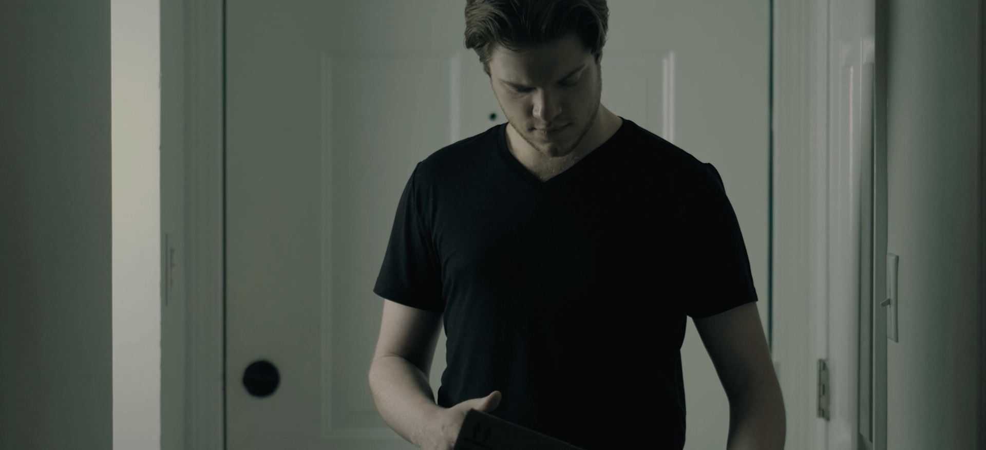 A short film about missing someone. The story is about a man who starts each day with an alarm and ends it with a knock on his door. I don’t want to show a repetitive routine but rather a subtle progression each day. The knock on the door repeats each day, and at the end, we discover what it is.