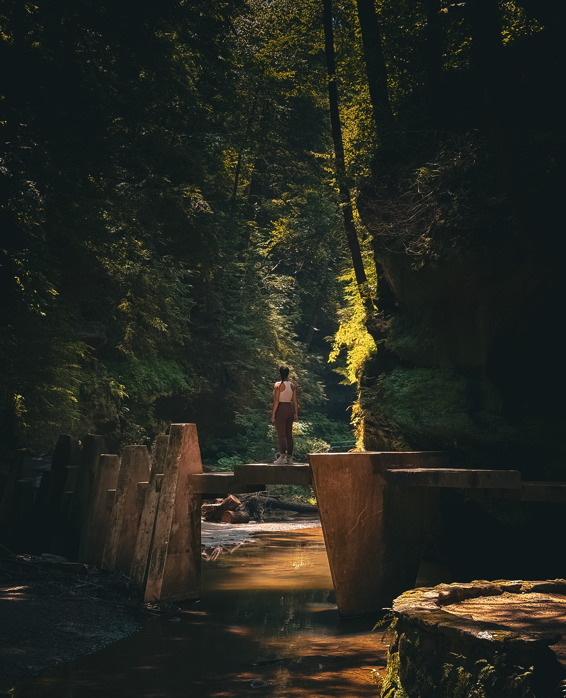 It is a moment between crossing and remaining, between fragility and strength. The scene becomes less about the bridge itself than about balance, how we hold ourselves when surrounded by enormity.